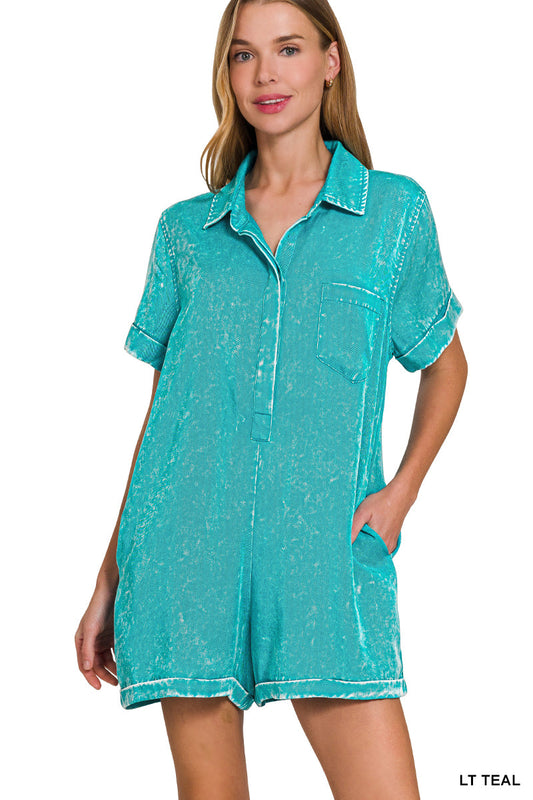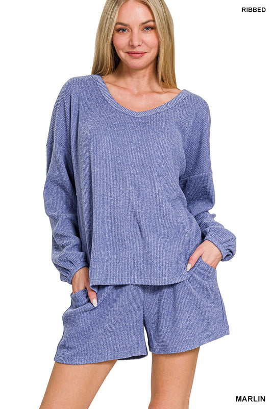 Washed Slub Short Sleeve Tee & Long Pants Set Zenana